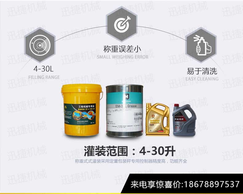 機(jī)油灌裝機(jī)適用于對4kg-25kg汽車用品類產(chǎn)品:潤滑油、防凍液、車用尿素等液體灌裝。自動(dòng)完成計(jì)數(shù)進(jìn)瓶、計(jì)重量灌裝、輸送出瓶等一系列操作。 特別適用于潤滑油、水劑、食用油的定量灌裝,是食品,醫(yī)藥,化妝品以及精細(xì)化工等行業(yè)的理想灌裝機(jī)。本機(jī)采用可編程控制器(PLC)、高速工控組態(tài)軟件進(jìn)行實(shí)時(shí)監(jiān)控的控制,使用調(diào)節(jié)方便。整機(jī)按GMP標(biāo)準(zhǔn)要求制作,各管路連接采用快裝方式,拆卸清洗方便,與物料接觸部位及外露部位均采用不銹鋼制造。整機(jī)安全、環(huán)保、安全、美觀、能適應(yīng)各種不同環(huán)境工作。
