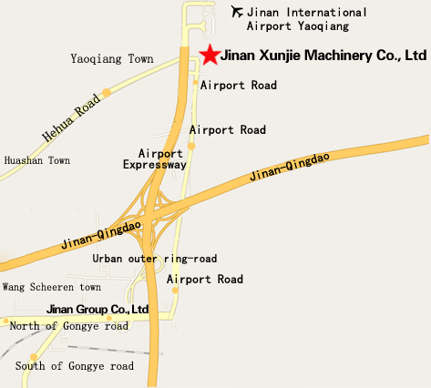 ②Through Ji-Qing highway to company: (refer to the company line map) along the Qingdao-Yinchuan Highway towards the direction of moving away from the wall International Airport, the airport highway, driving along the airport highway 4.4 km, turn right to travel 90 meters, had the right gas station about 270 meters, the right front turn into Airport Road, travel along the Airport Road, about 2.6 km to reach the company. |