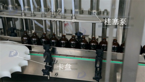 柱塞式計(jì)量泵定量灌裝,灌裝針頭設(shè)有防滴漏裝置,精度高